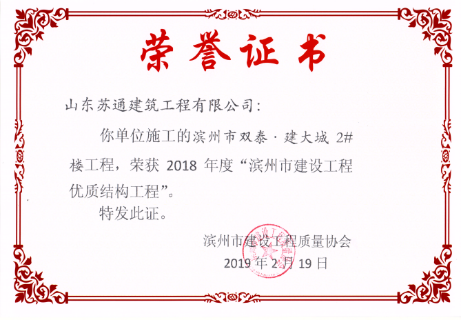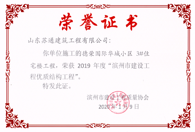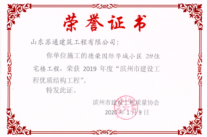 • 喜訊:我公司三位同志獲評(píng)濱州市建筑企業(yè)優(yōu)秀項(xiàng)目經(jīng)理稱(chēng)號(hào)